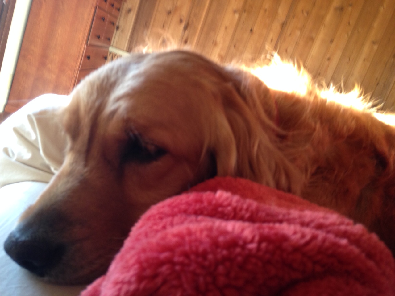 But back to Cali. It is nice to have at least one dog who actually is comfortable being a dog and is happy to fulfill her role as the family dog. She’s very cuddly, for example, and loves to be petted. She’s always enthusiastic about going for a walk or out to play. She enjoys doggy things, like chasing after a tennis ball and refusing to bring it back, barking at deer, licking all the hand lotion off of my fingers, and begging for treats. She wants to be near me most of the time, even when I am doing boring (to her) things, like writing a blog post (she’s at my feet) or grading papers. Like her ancestor Oriel, Cali embodies everything people love about dogs. She’s sweet, affectionate, playful and goofy sometimes. She’s great company and very friendly. And secure in her dogness.