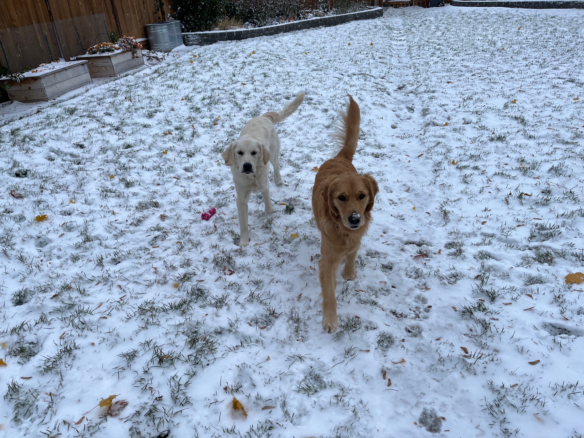 I spent Christmas with some of my favorite members of the extended “pack-family” — Stella and Cruiser. They, along with Orly and Dotty, kept me pretty busy. Besides the critical responsibility of letting them in and out, constantly, there were auxiliary duties: Playing tug with Stella and her Large Orange Toy. Throwing balls and other toys so Cruiser and Dotty could run after them, catch them or pick them up, then run around with them and not bring them back.