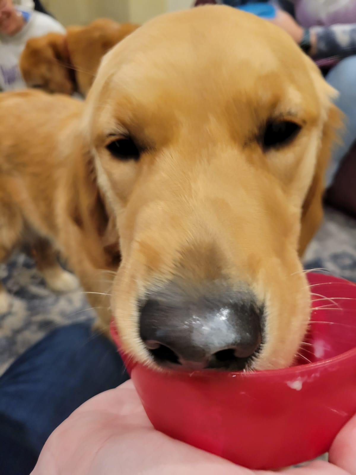 The real treat was the cup of vanilla ice cream she got to eat at home. A few photos, above, show her delight.
