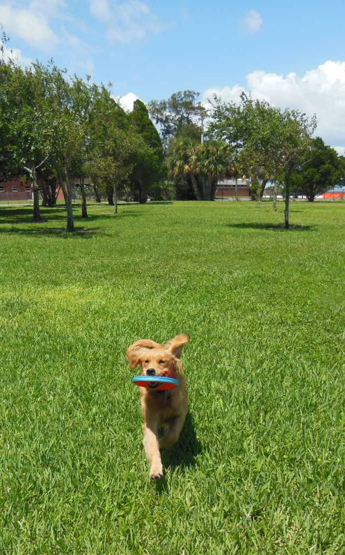 Despite her boundless energy, she does have an ‘off’ switch, and she’s able to keep herself occupied in between adventures. She rarely indulges in destructive behavior, though she’s destroyed a few toys, and she is a menace to anything growing in the back yard — a trait she shares with her littermates. She seems (thankfully) to lack her siblings’ genetic tp addiction, though.
