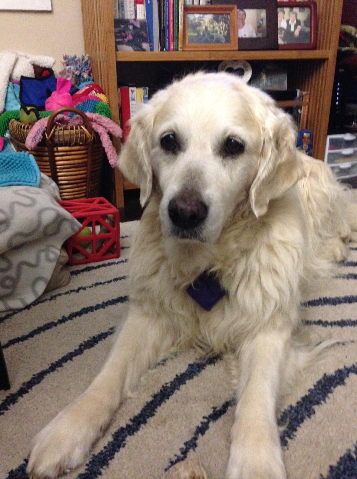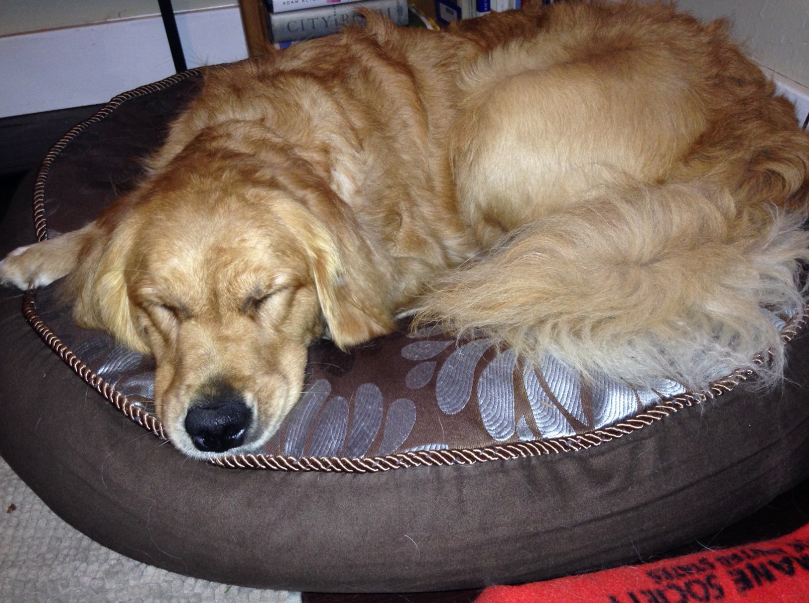 I live in a tiny apartment, but, in addition to the living room where I spend much of my time, the dogs have access to the yard most of the time, a bedroom (with very comfy dog beds), and the kitchen and bathroom,which offer a cool floor in hot weather. The vast majority of the time, Jana chooses to be in whatever room I am in. She gets up and moves if I do. Even if I tell her, “Don’t move; I am coming right back,” she goes with me. In fact, ages ago, tiny 7-week-old Jana attempted a huge flight of stairs when I ran upstairs to get something and she just didn’t want to be left alone for even a minute.