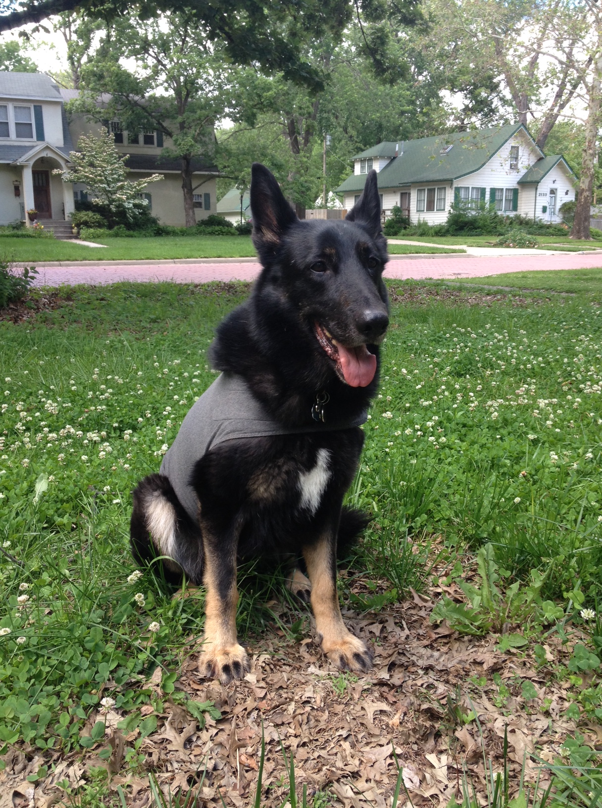 In Ziggy’s case, the ThunderShirt™ does the trick. Donning his trusty gray garment, Ziggy, a.k.a. Thunderboy®, acquires the superpower he needs to survive the back-to-back threats of local lawnmowers and ubiquitous thunderstorms.