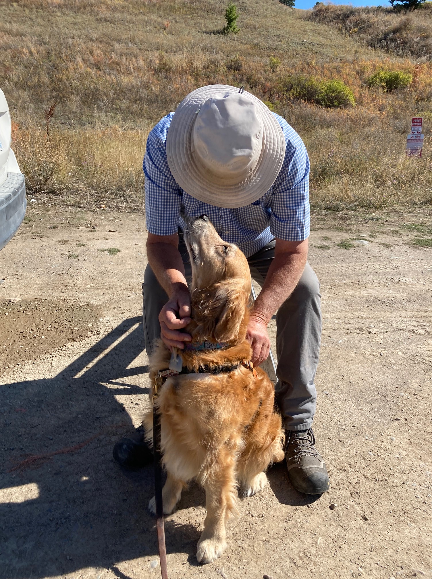 She was happy to be at the vet’s, where she met a very friendly (and very large) Great Pyrenees dog in for a dental cleaning, and weighed in at 43 pounds.