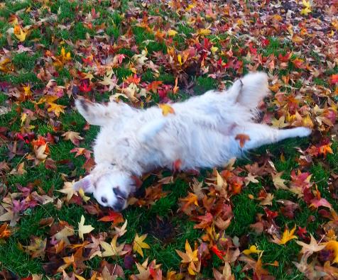 A happy Jana rolls in leaves on a lush lawnI had hoped to be celebrating Jana’s 14th birthday today, July 2. Instead, Cali and I have moved to Montana without her; we marked her birthday with a walk to a place she loved, Mormon Creek. We were with Koala, Storm, Ki, and Django. Quite a few dogs are missing from this group.